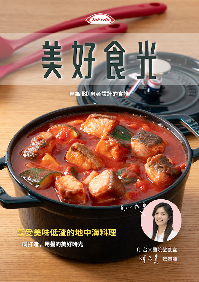 【美好時光IBD食譜】,是專為IBD病友設計的食譜,希望病友在疾病進展的各種時期,依然能享受美食並兼顧營養。